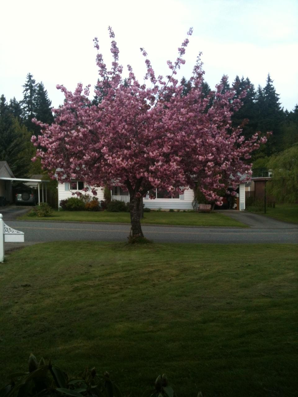 Pink is the colour of Spring in our Valley. Pink is the colour of the cherry trees lining our street reminding me of sugared icing on cupcakes. They are flamboyant, cheerful and spectacular as you drive between them all the way up block upon block. The only downside is that once they are in full bloom, the flowers become fragile and the least bit of stirring breeze causes them to shed. The blossoms never seem to last long enough. As spectacular as these trees are in full bloom is when the spring breezes become strong enough to release the petals of the flowers. That is when the whole street reminds me of a bridal party. Pink petals swirling and cascading down like confetti, turning everything magical.