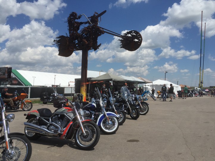 Randy, the cousin of one of our friends who allowed us to crash at their campsite at the Chip, is my new hero. He was able to do some diagnostics on my bike and conclude that it was the regulator of the bike. I tried to telephone the Harley shop in Sturgis itself, and only got a message on their answering machine that stated: “Due to the large volume of calls we are unable to come to the telephone. The number for the local towing company is …..” Not a good sign. Our only option was to try and get to town.