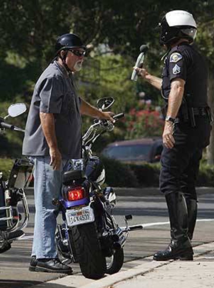 A rookie police officer pulled a biker over for speeding and had the following exchange:• Officer: May I see your driver’s license?