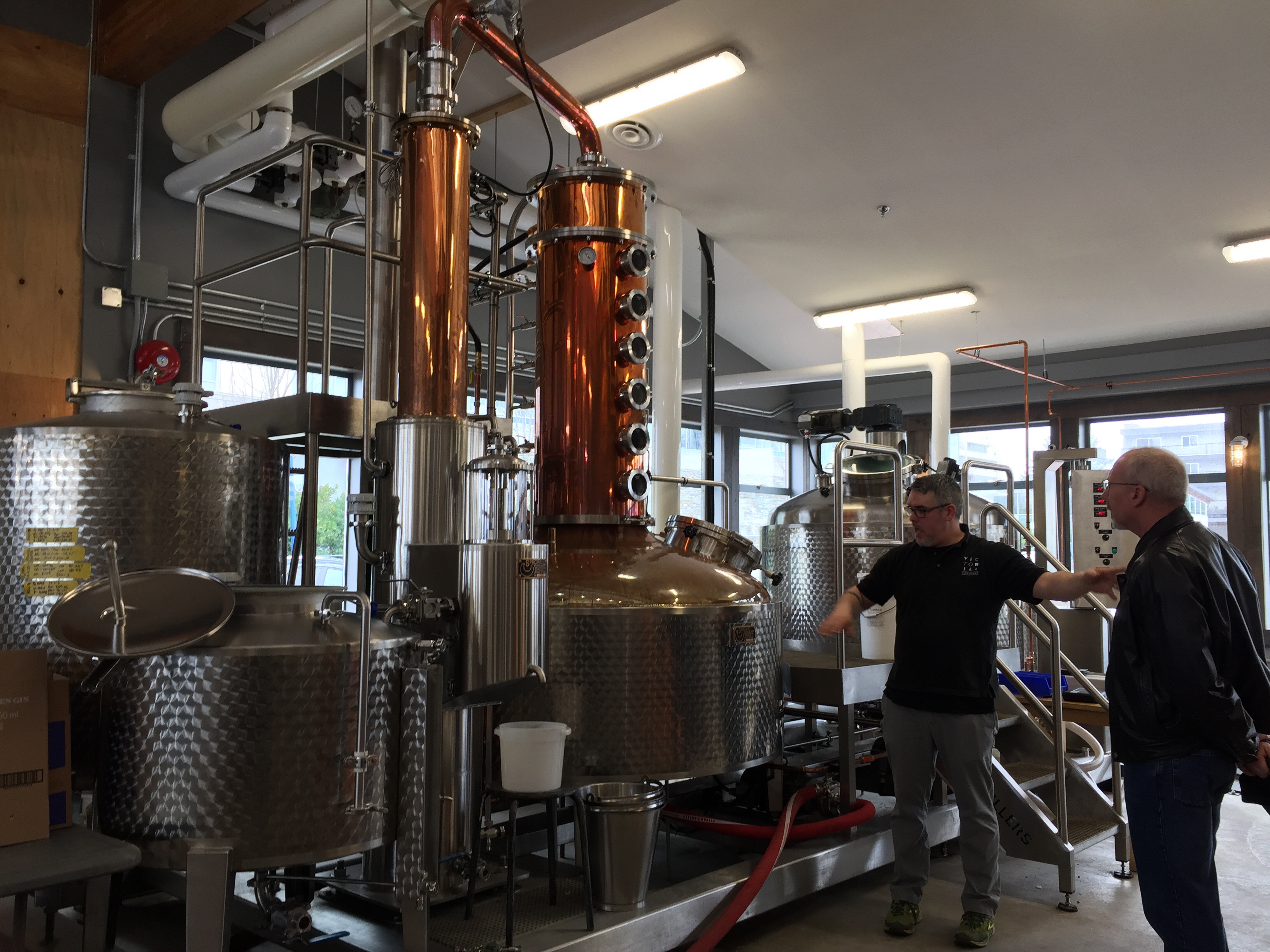 While walking on the waterfront we stumbled across distillery. I’d heard that there was one down in the Victoria area, so we wandered in to take a look. Upon entering we found a wonderful little place and – fortuitous for us- discovered we were in time for a tour of the facilities