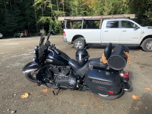 Haven’t been on the bike much lately so when the weather report states “30% chance of showers” that actually equates to “70% chance of sunshine”. I posted online to a local group of women that my plan was to go to Englishmen River Falls Provincial Park for a picnic lunch – and away I went. The temp hovered around the 12 degree Celsius mark which was a bit nippy on the highway, and required the plug in vest until I got to the top of The Hump and the found the sun! From there is was smooth sailing. Traffic was good and moved through Cathedral Grove (unlike in the summer where the pace is torture – as in 40kph is an 80 kph zone). Thankfully tourist season is behind us.